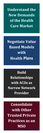 Most of these changes are challenging and expensive for the small private practice to implement and create strategies around. Integrated provider business models can make a more powerful impact in their market based on size and value delivery.